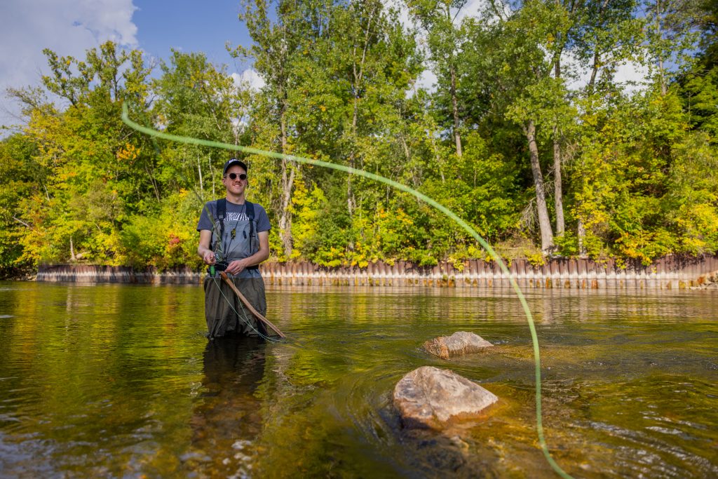 For many anglers, the Muskegon River really becomes famous below Croton Dam in Newaygo County. An easy day trip from Big Rapids, this tailwater section is known for strong runs of steelhead, Chinook salmon, and brown trout, along with resident trout that benefit from consistently cool water. Cold springs and feeder creeks help maintain favorable water temperatures and oxygen, creating a high-quality habitat for migratory and resident fish. Wading anglers usually concentrate between Croton Dam and access points further downstream, while drift boats and jet boats can cover more water.